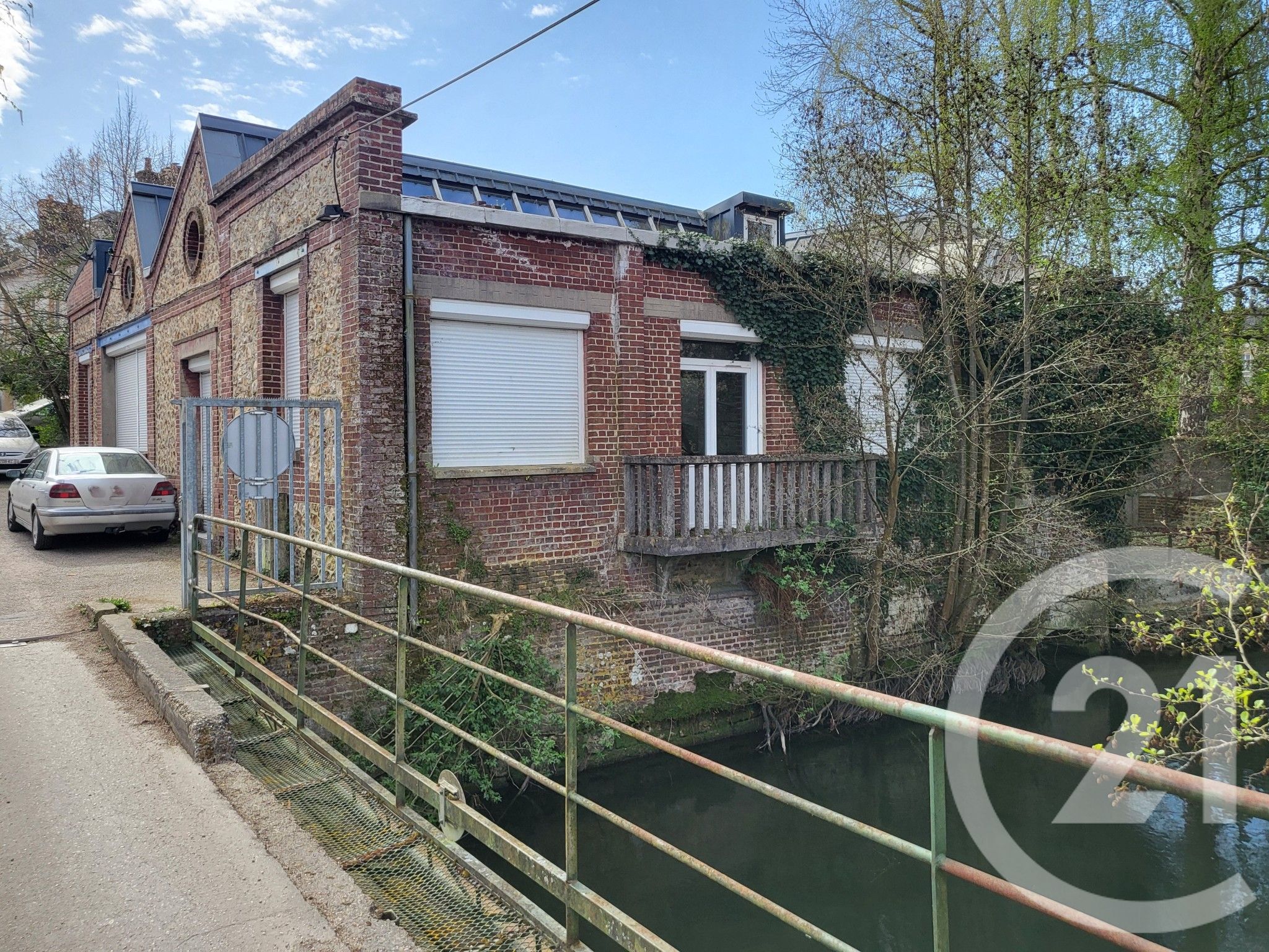 Un petit balcon complète ce bien, idéalement placé au dessus d'une rivière, créant un cadre bucolique.